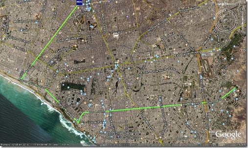 Agarre el google earth y me hice toda la ruta del Sinchi Roca [Linea verde]. Me di cuenta que he estado yendo por el camino MÁS largo. Asi que decidi buscar la ruta de otra Linea, esta vez una llamada Orion [Linea Mora]. [Ojo, todas las rutas las he investigado observando a los buses, sacando conclusiones propias, la sinchi roca termina al final de Angamos pero sigue despues del la brazil, pero nunca la he seguido más alla, asi que esta ruta no esta concluida].